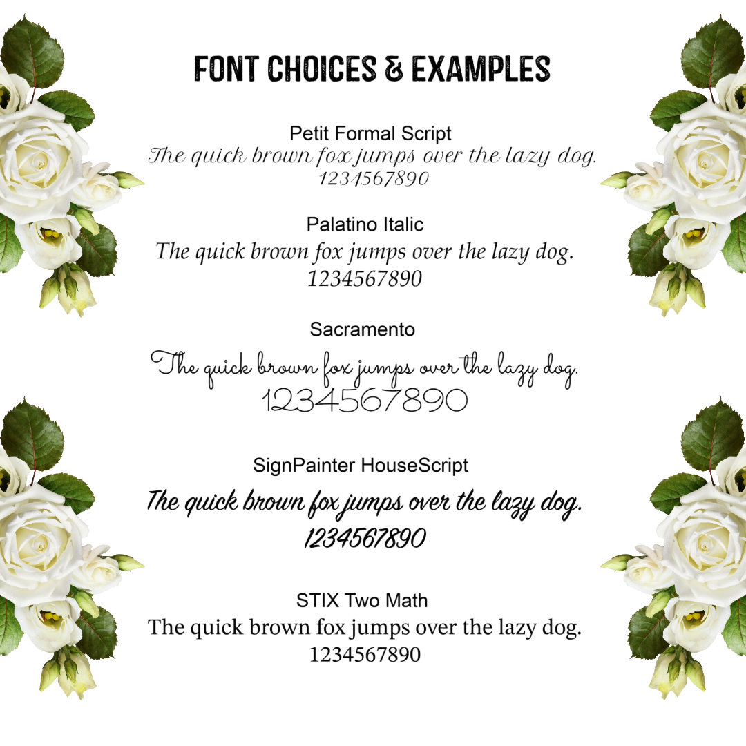 - Select the font you would like. The listing images showcase examples of the fonts.