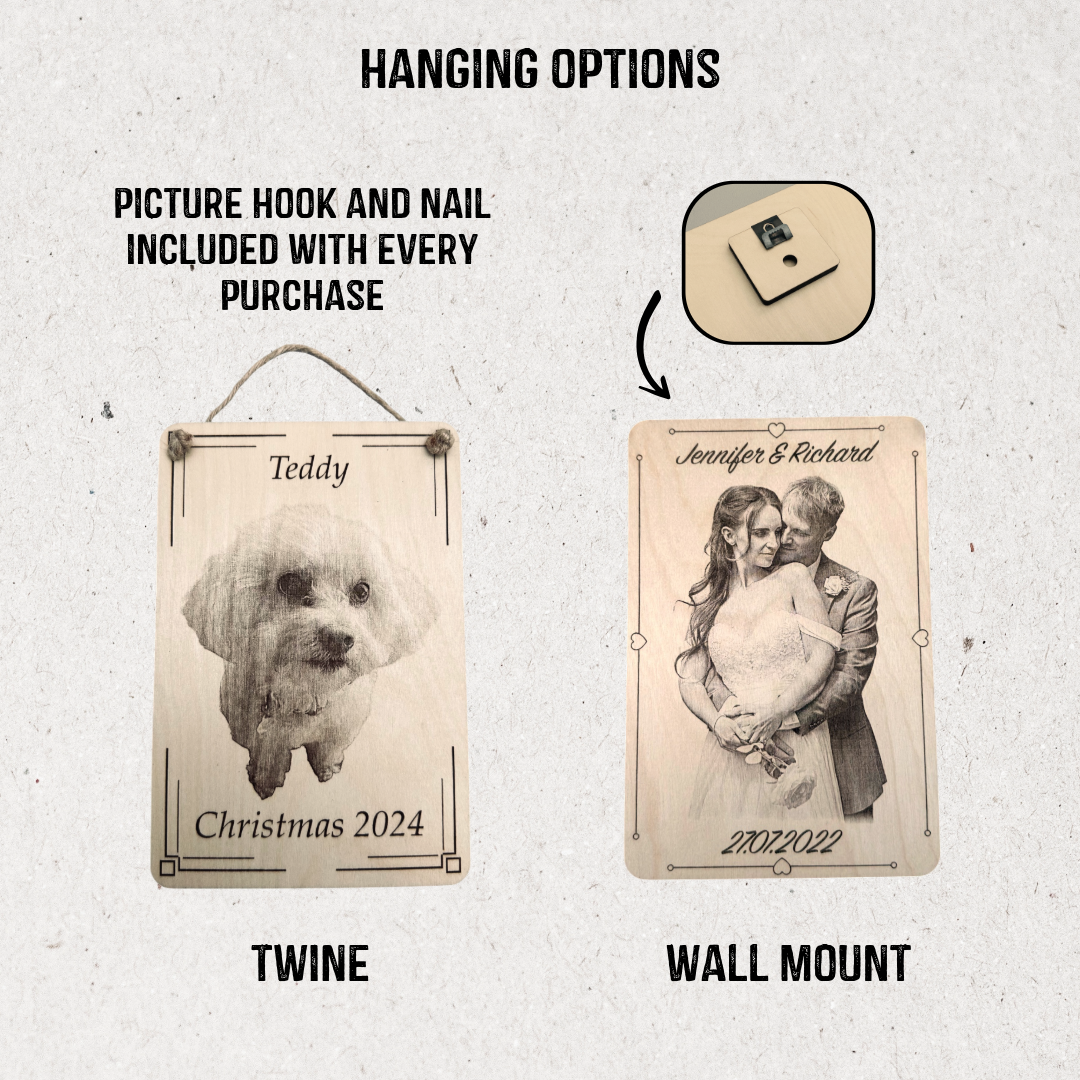 Choose from two hanging options - twine for a rustic touch or wall mounting for a sleek display. Each plaque also comes with a picture hook and nail for effortless hanging.