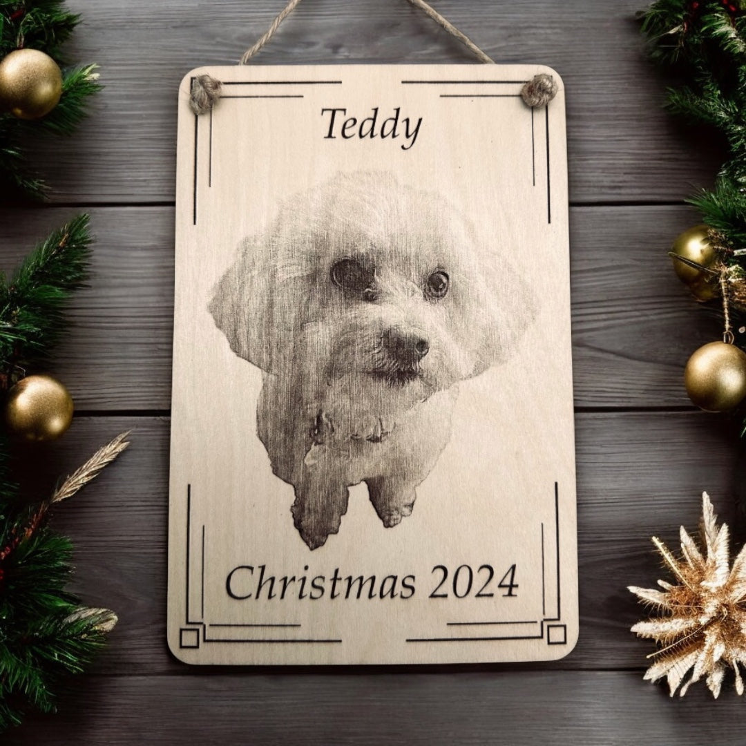 Personalised Wooden Photo Plaque - Custom Engraved with Name & Date for Family, Couples & Pets